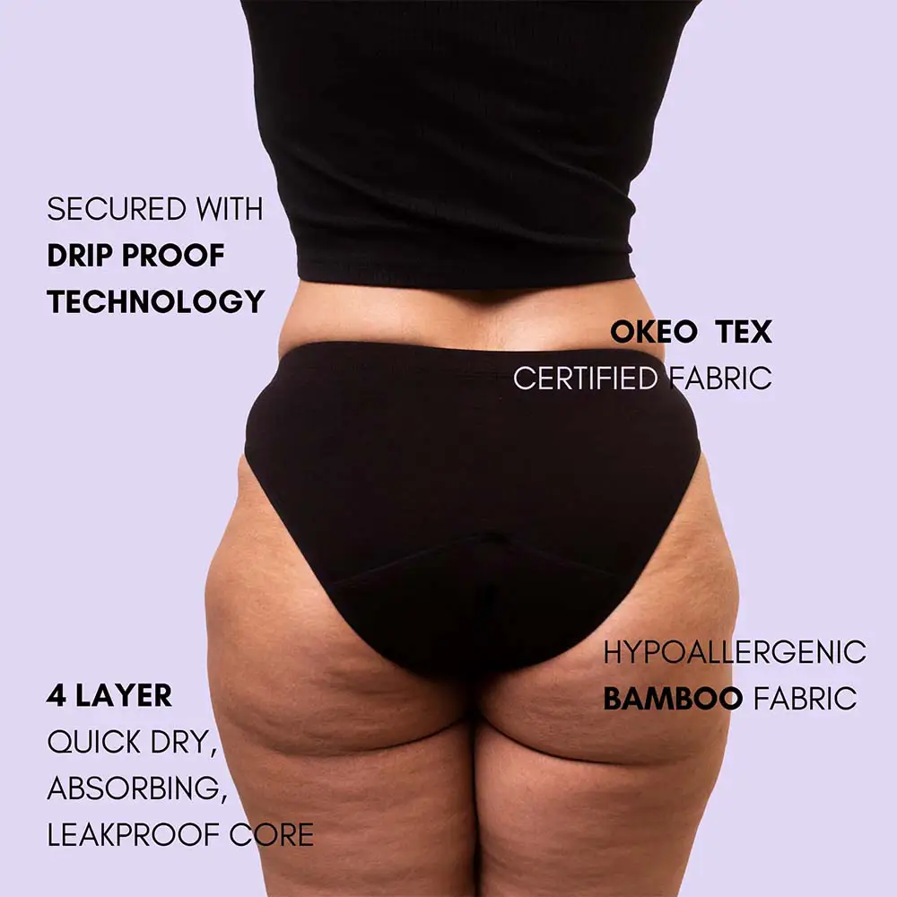 Introducing a revolutionary new way to feel confident and comfortable during your period: Our Medium Absorbency Leakproof Bikini, made with a soft and breathable blend of bamboo cotton. Using our Drip Proof Technology which allows for absorption of up to 8 teaspoons of liquid, allowing you to say goodbye to pads and tampons.
