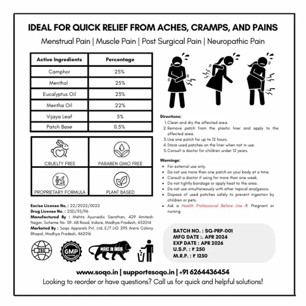 Fit & Fearless: Ayurvedic Pain Relief Patch for Menstrual Cramps, Muscle Tension and Neuropathic Pain